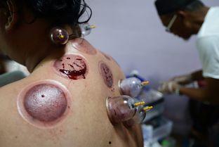 3. 在拔罐师的帮助下,进行拔罐。